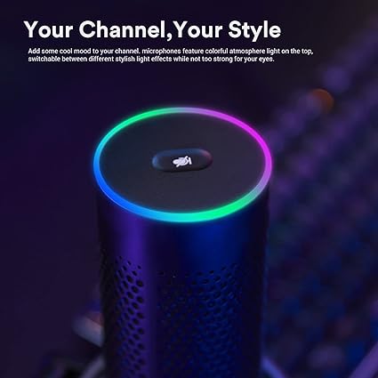 • 【RGB Color Ring】 the microphones feature colorful atmosphere light on the top, switchable between different stylish light effects while not too strong for your eyes.